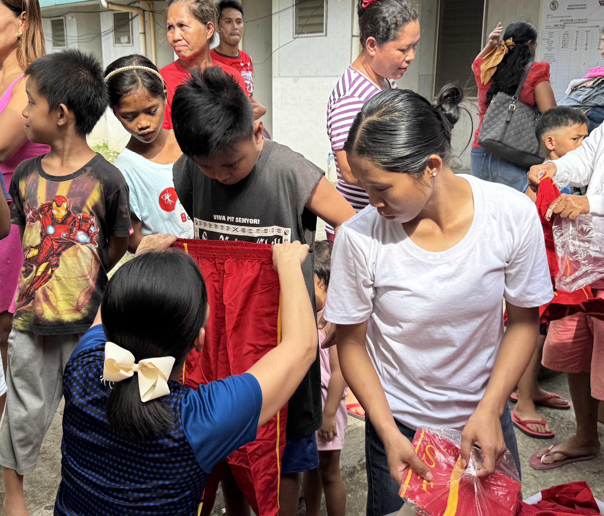Beneficiaries received rice, canned goods, hygiene kits, powdered milk and the children received brand new CST-R jogging pants.