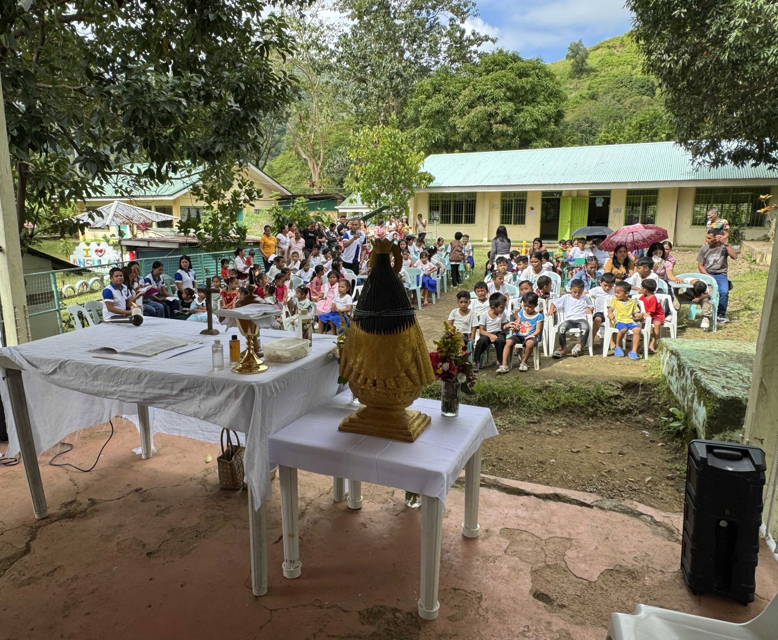 The Lady in Ansulag. This image of Nuestra Señora de La Salud came to Ansulag in November 2022, when the community celebrated her feast day for the first time. A Thomasian alumnus and religious donated her to CST-R Community Extension and Development Office (CEDO) for Ansulag Elementary School. In frame, Rev. Fr. Cristopher C. Maspara, OAR, CST-R president, presides over the Thanksgiving Mass in Honor of La Salud’s Feast Day while a teacher delivers the readings.