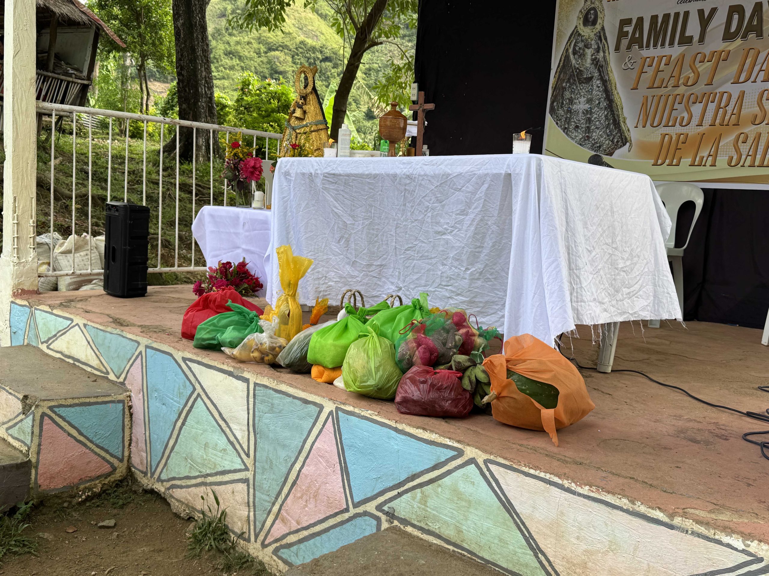 On November 19, 2025, Rev. Fr. Cristopher C. Maspara, OAR, president of Colegio de Sto. Tomas-Recoletos, Inc., visited Ansulag once again and led the people in celebrating the Thanksgiving Mass in honor of La Salud’s feast day. At the same time, the school and community also held the yearly Family Day. Pupils and their parents offered from the bounty of their homes—from flowers to bananas and even rice were brought at the feet of La Salud.